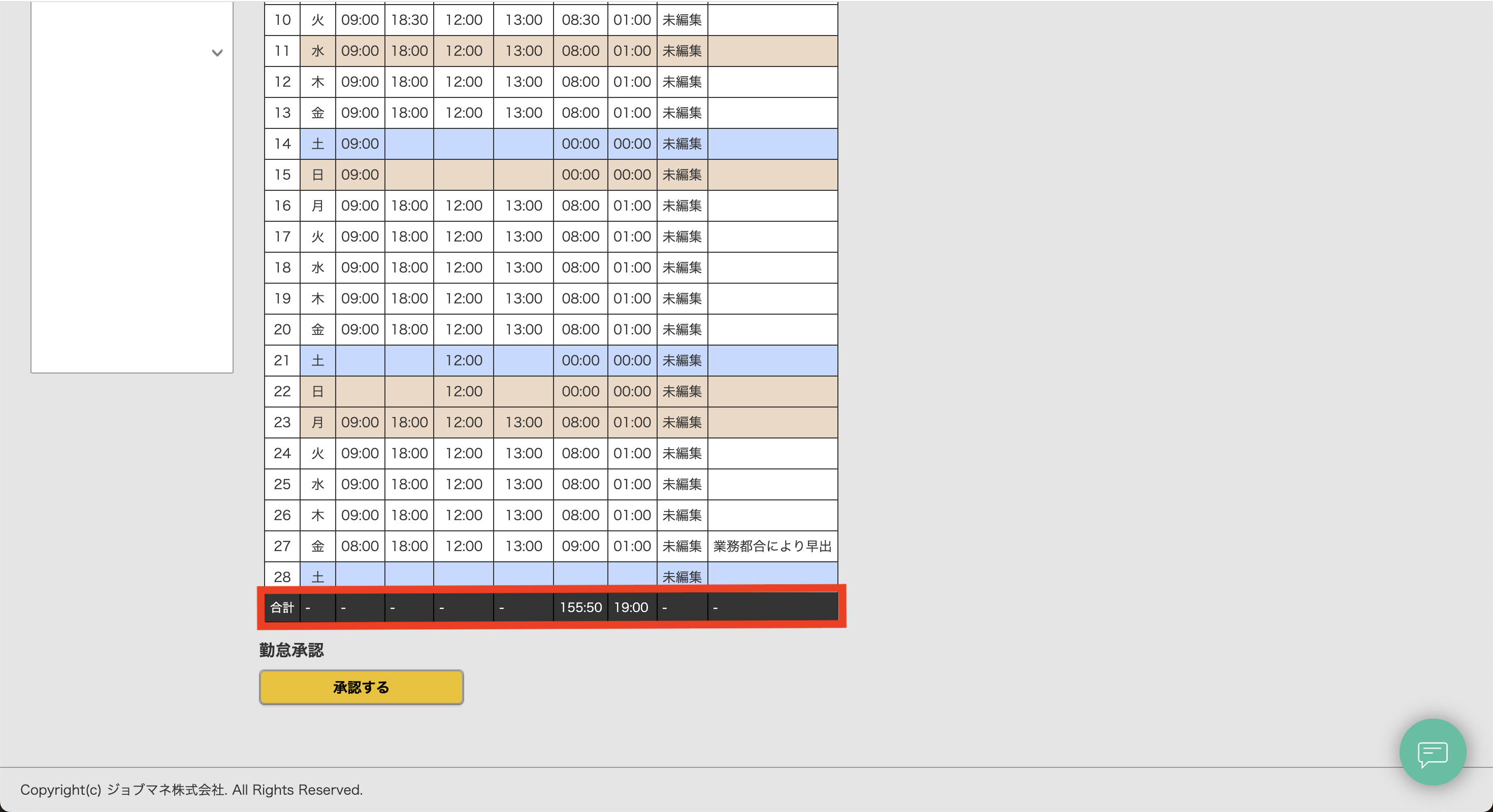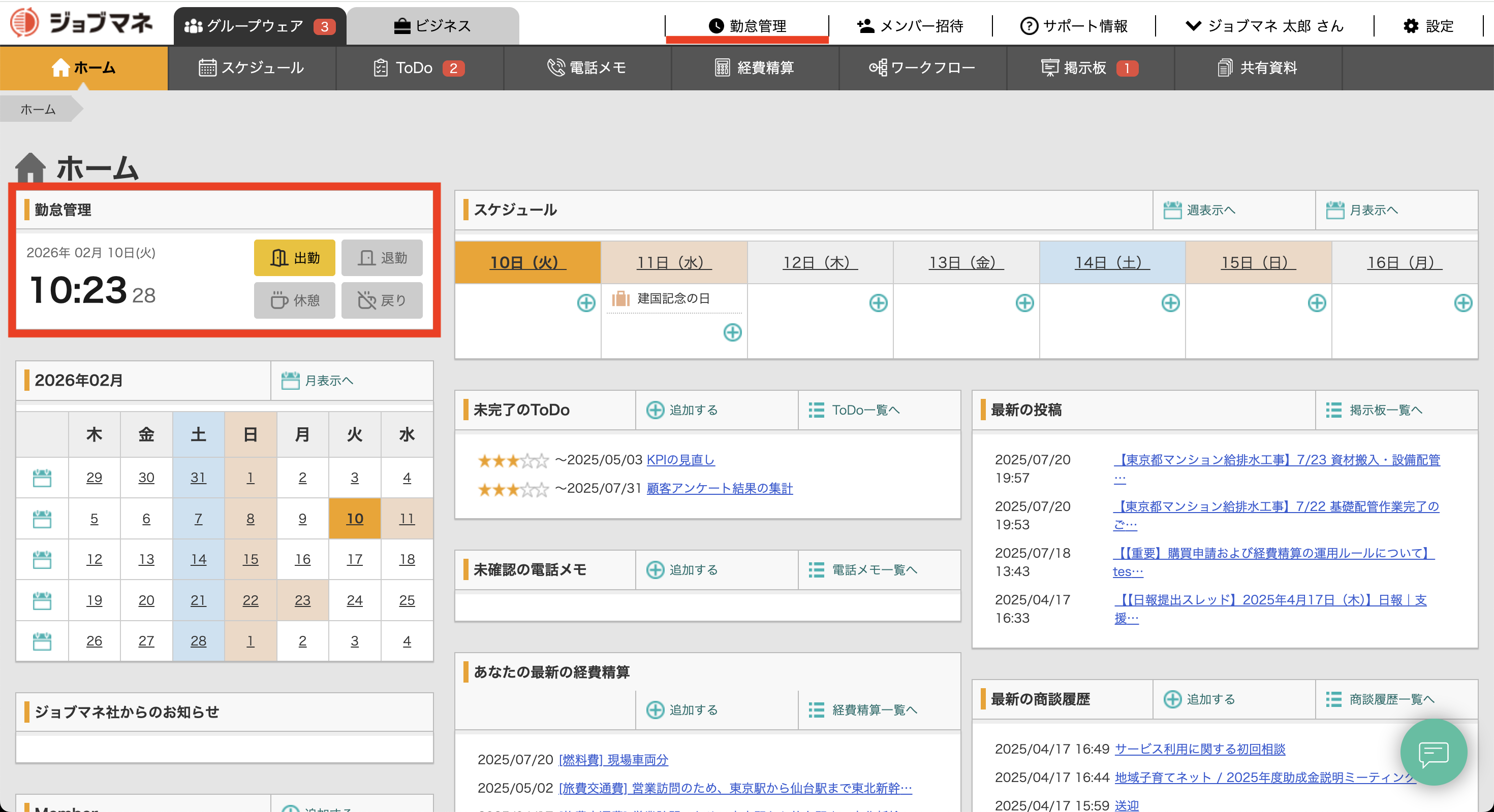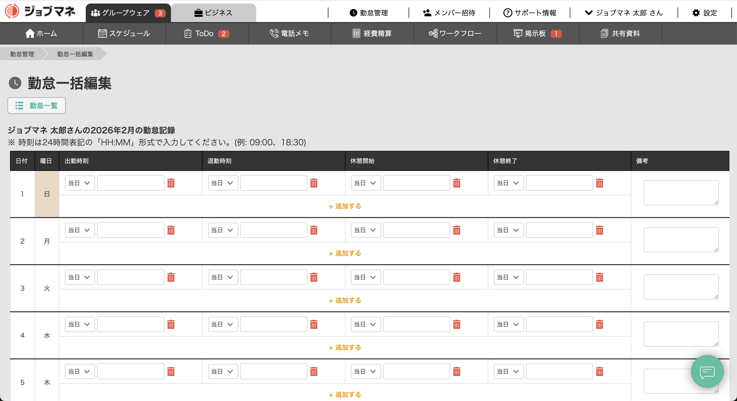 勤怠管理機能